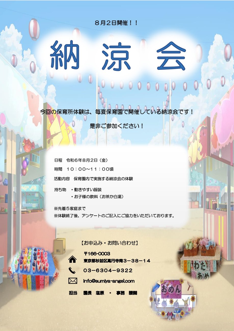 (募集終了)8月2日(金)実施の保育所体験のご案内です!
