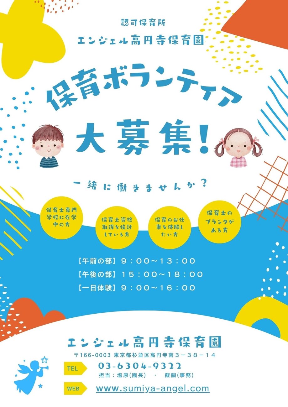 (募集終了)6月29日㈯実施の保育所体験のご案内です!