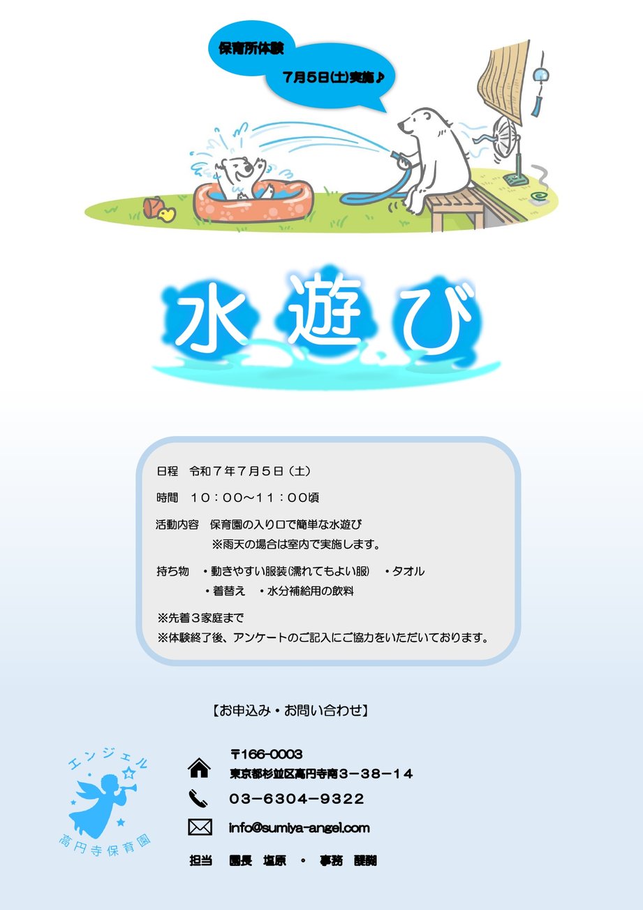 (募集終了)7月5日㈯実施の保育所体験のご案内です!